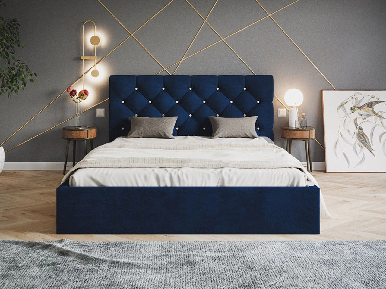 Łóżko tapicerowane z pojemnikiem i stelażem 180x200 Selva Ciemny niebieski