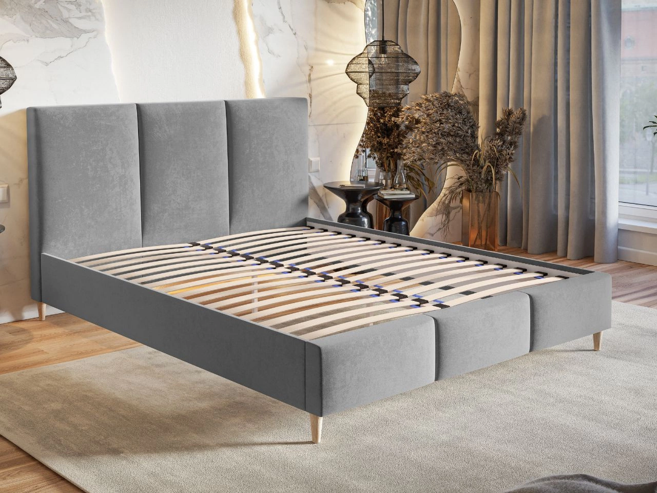 Łóżko tapicerowane ze stelażem 140x200 Trio Niebieskie