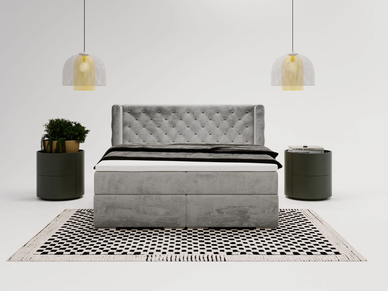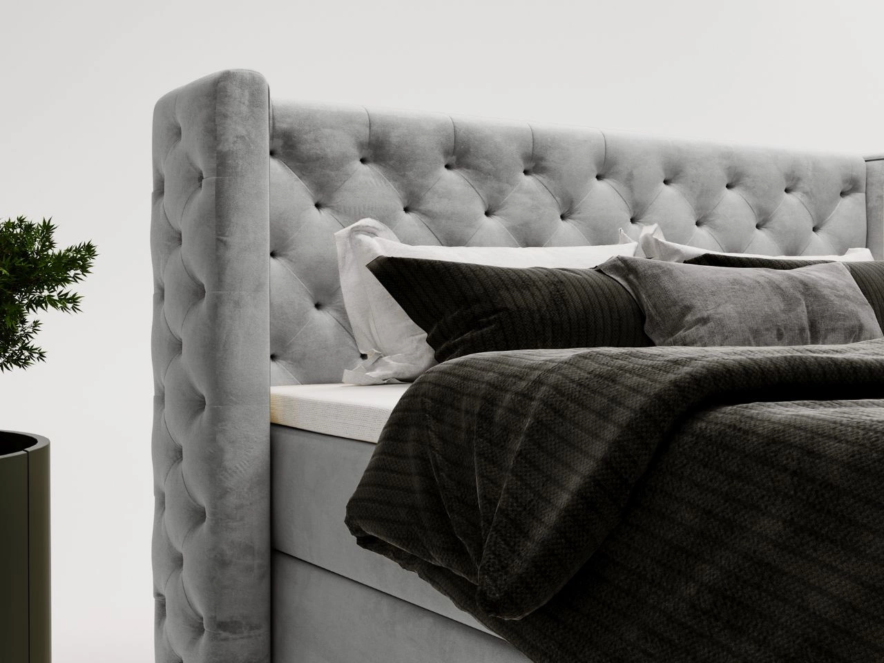 Łóżko kontynentalne Lion 160x200 cm z pikowanym zagłówkiem to synonim luksusu, komfortu i elegancji, które doskonale komponuje się z nowoczesnymi sypialniami. Jego starannie przemyślany design oraz wysokiej jakości materiały sprawiają, że staje się centralnym punktem każdego wnętrza.