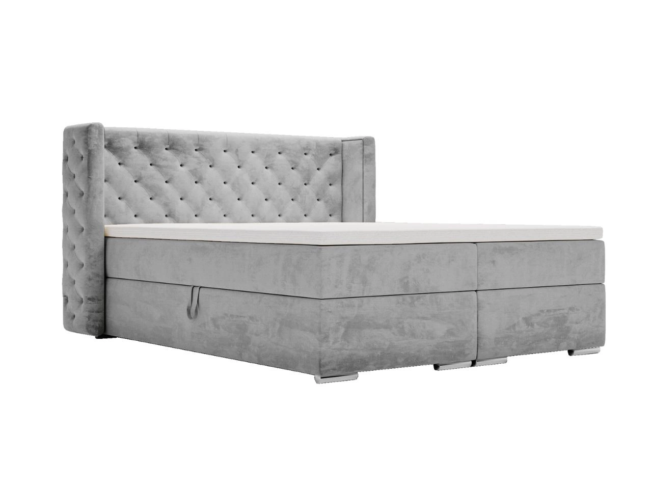 Łóżko kontynentalne z pojemnikiem na pościel 160x200 cm Lion Szare