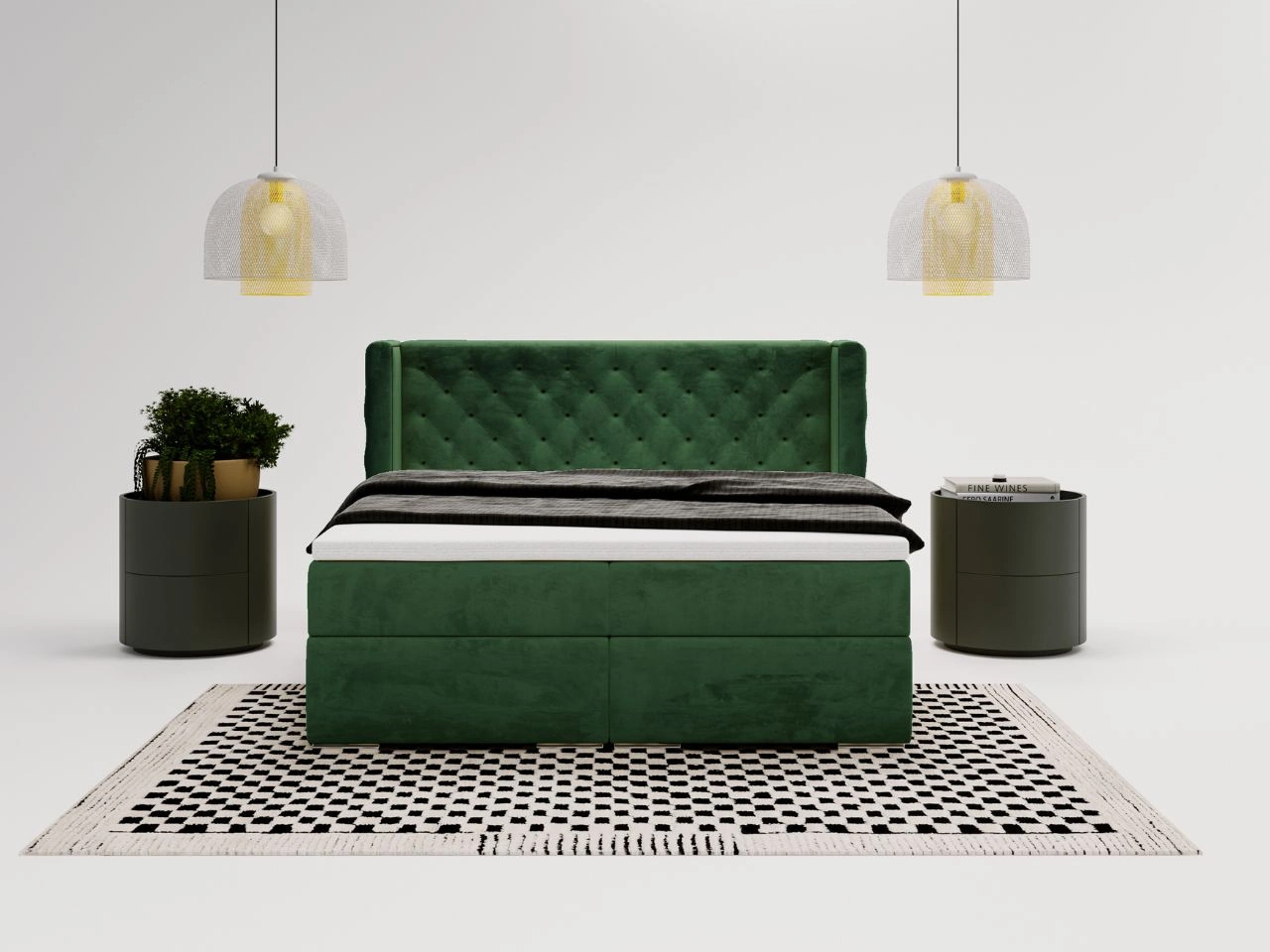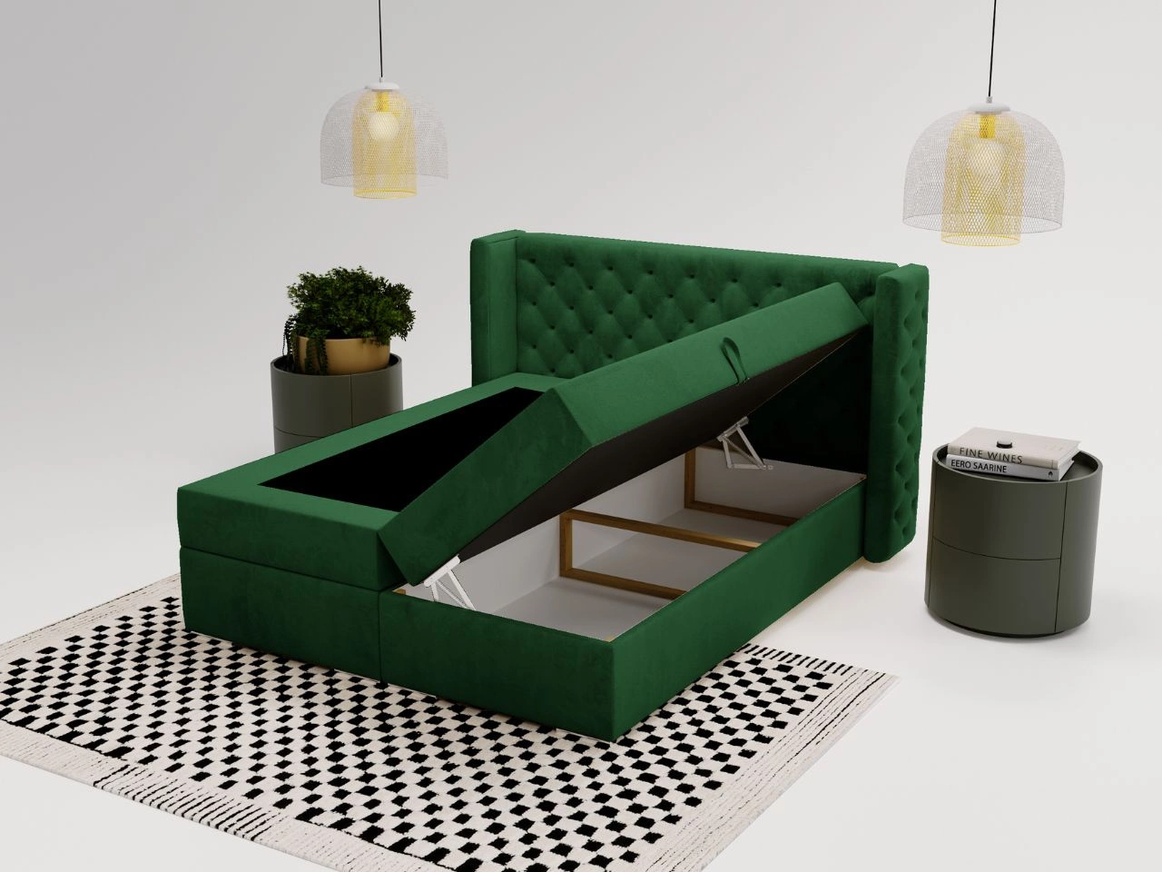 Łóżko kontynentalne z pojemnikiem na pościel 160x200 cm Lion Zielone