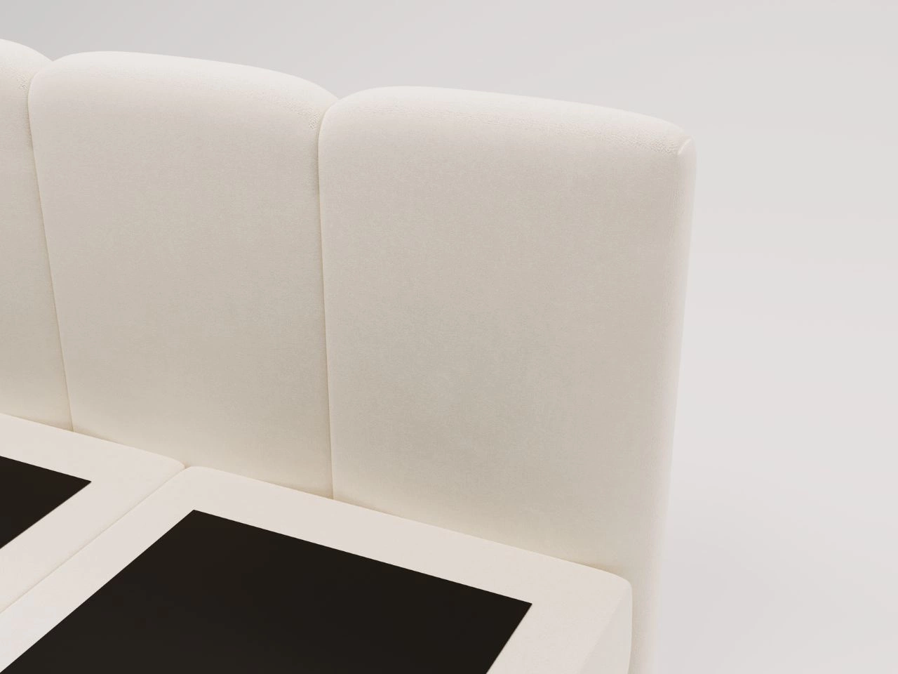 Łóżko kontynentalne Campi posiada dwa przestronne pojemniki na pościel dzięki czemu łączy elegancki design z wyjątkową praktycznością. Pojemniki otwierane są od boku ku górze, zastosowany mechanizm sprężynowy pozwala na płynne otwierane pojemników co bezpośrednio wpływa na komfort użytkowania. Dzięki starannie dobranym materiałom łóżko Campi zapewnia najwyższy komfort i staje się centralnym punktem relaksu w każdej sypialni.
