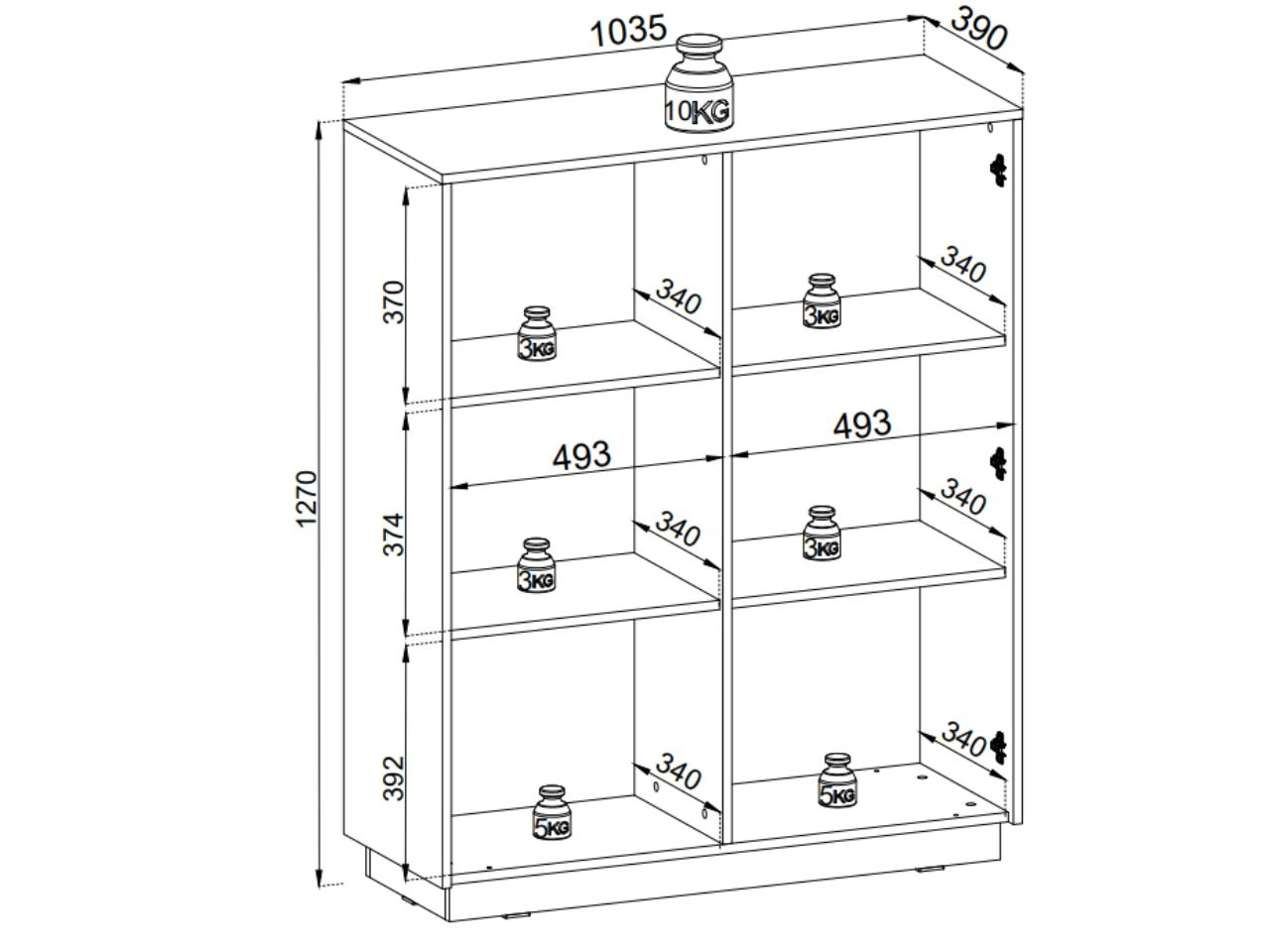 Wnętrze komody skrywa sześć pojemnych półek, zapewniających dużo miejsca do przechowywania różnych przedmiotów – od książek po tekstylia. Dzięki temu mebel jest nie tylko stylowy, ale także praktyczny i pomaga w utrzymaniu porządku w domu.
