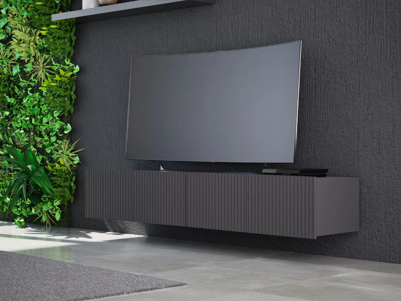 Szafka RTV Kioto została wykonana z wysokiej jakości materiałów, co gwarantuje jej trwałość i odporność na codzienne użytkowanie. Korpus składa się z płyty wiórowej o grubości 16 mm, a fronty z ryflowanej płyty MDF o tej samej grubości, co nadaje meblowi nowoczesny, stylowy wygląd. Tył szafki wykonano z płyty HDF o grubości 3 mm, a krawędzie zabezpieczono obrzeżem ABS dla dodatkowej wytrzymałości.