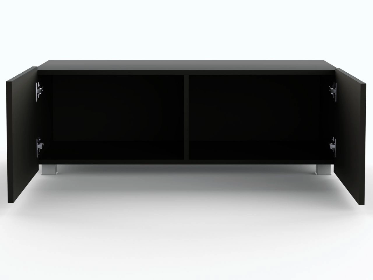 Szafka Kioto wyposażona jest w cztery otwierane drzwi, które zapewniają wygodne przechowywanie sprzętu RTV i innych akcesoriów. Szybki montaż zawiasów oraz system cichego domyku sprawiają, że użytkowanie szafki jest niezwykle komfortowe. Ponadto w zestawie znajdują się zarówno nóżki, jak i zawieszki, co pozwala na dowolny sposób montażu – jako szafka stojąca lub wisząca.