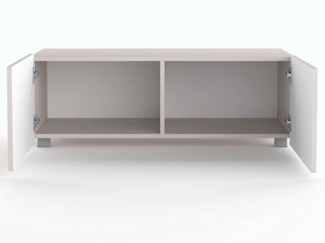 Szafka Kioto wyposażona jest w cztery otwierane drzwi, które zapewniają wygodne przechowywanie sprzętu RTV i innych akcesoriów. Szybki montaż zawiasów oraz system cichego domyku sprawiają, że użytkowanie szafki jest niezwykle komfortowe. Ponadto w zestawie znajdują się zarówno nóżki, jak i zawieszki, co pozwala na dowolny sposób montażu – jako szafka stojąca lub wisząca.