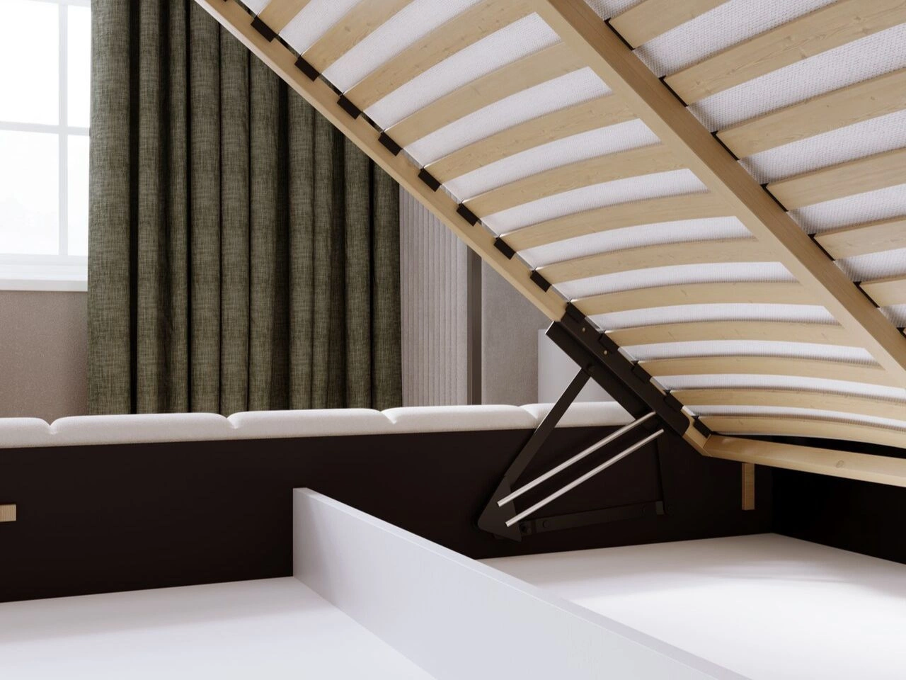 - Wzmocniona rama łóżka z automatami sprężynowymi wspomagającymi otwieranie pojemnika