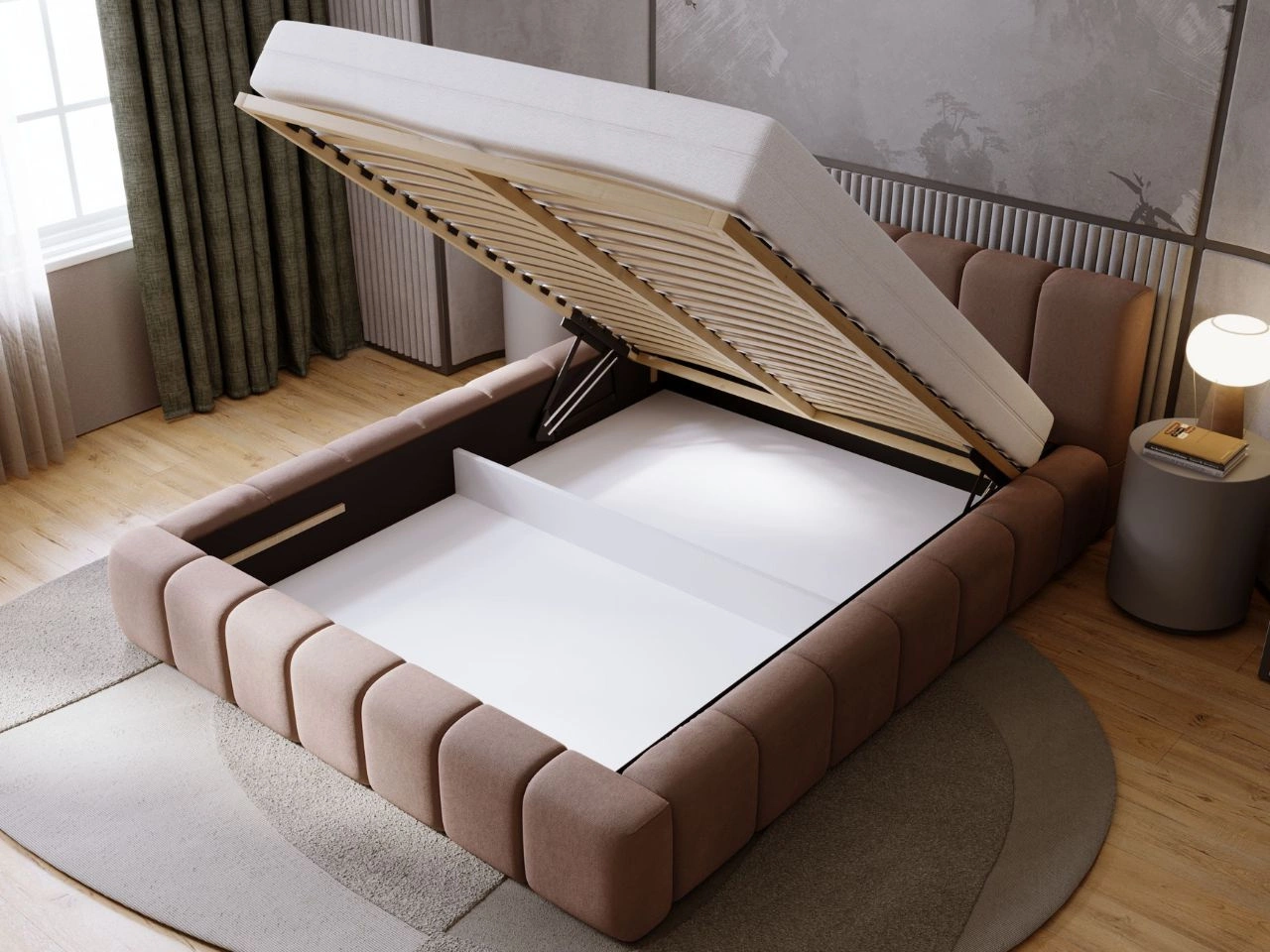 - Wzmocniona rama łóżka z automatami sprężynowymi wspomagającymi otwieranie pojemnika
