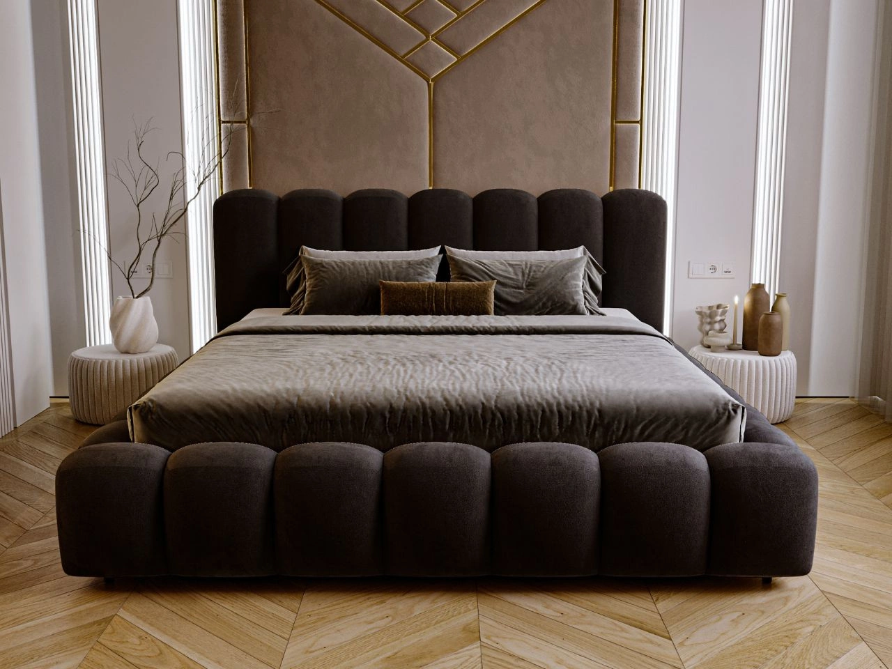 Charakterystyczną cechą łóżka Averia jest jego imponujące wezgłowie. Gruba warstwa pianki, którą pokryto konstrukcję, nadaje łóżku unikalny kształt, który doskonale harmonizuje z eleganckimi i nowoczesnymi aranżacjami wnętrz.