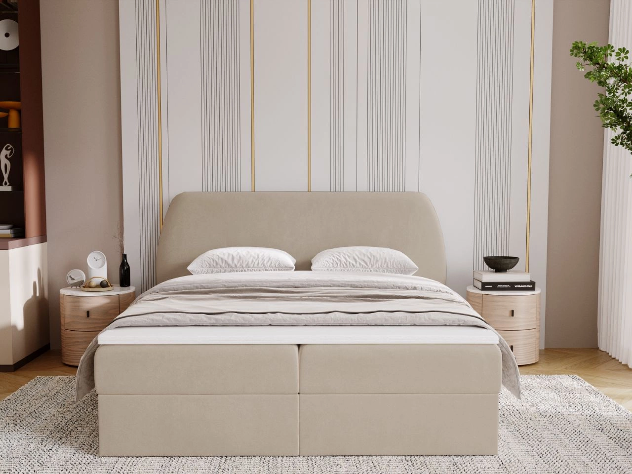 Łóżko kontynentalne z pojemnikiem na pościel 180x200 Bogota Beżowe