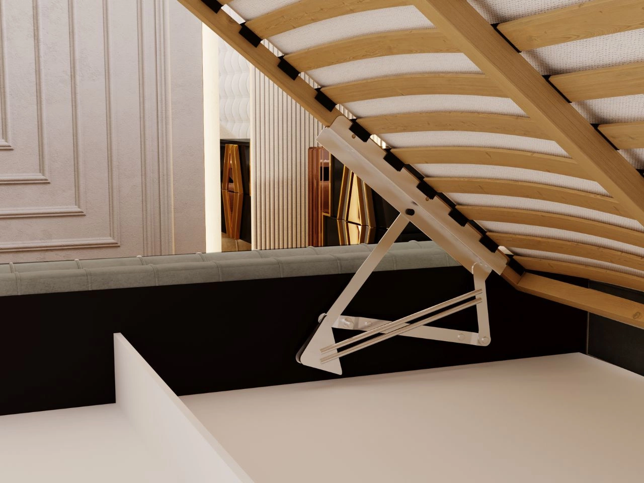 • Łóżko tapicerowane wyposażone w pojemnik na pościel