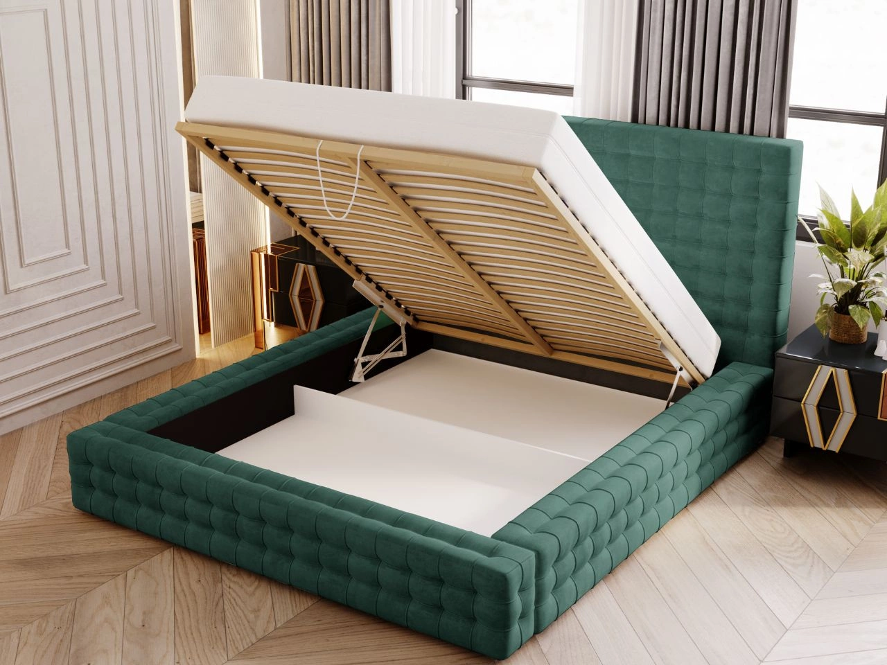 Łóżko tapicerowane z pojemnikiem i stelażem 160x200 Barbados Zielone