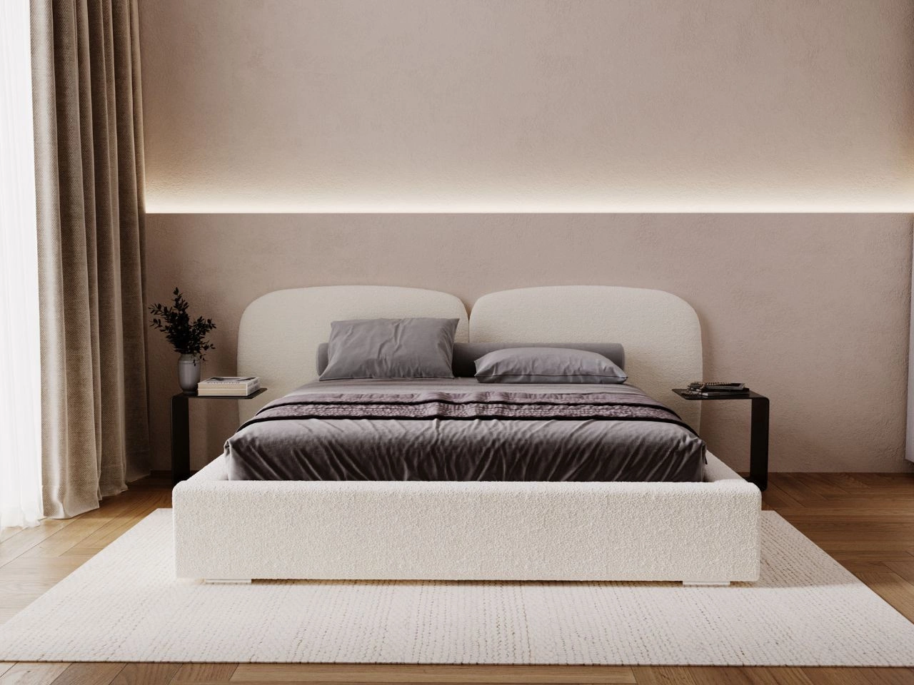 Łóżko tapicerowane Palermo zostało pokryte tkaniną Sicuro, jest to kwintesencja elegancji i subtelnej klasyki. Splot tkaniny doskonale komponuje się z minimalistycznymi, a także bardziej dekoracyjnymi aranżacjami. Struktura materiału podkreśla jego wyjątkowy charakter – liczne węzły i supełki, typowe dla tkanin plecionych wzbogacają wygląd tapicerowanego mebla. Poza estetyką materiał obiciowy Sicuro wyróżnia się także doskonałymi właściwościami użytkowymi. Na ich czele stoi trudnopalność wraz z odpornością na ścieranie.