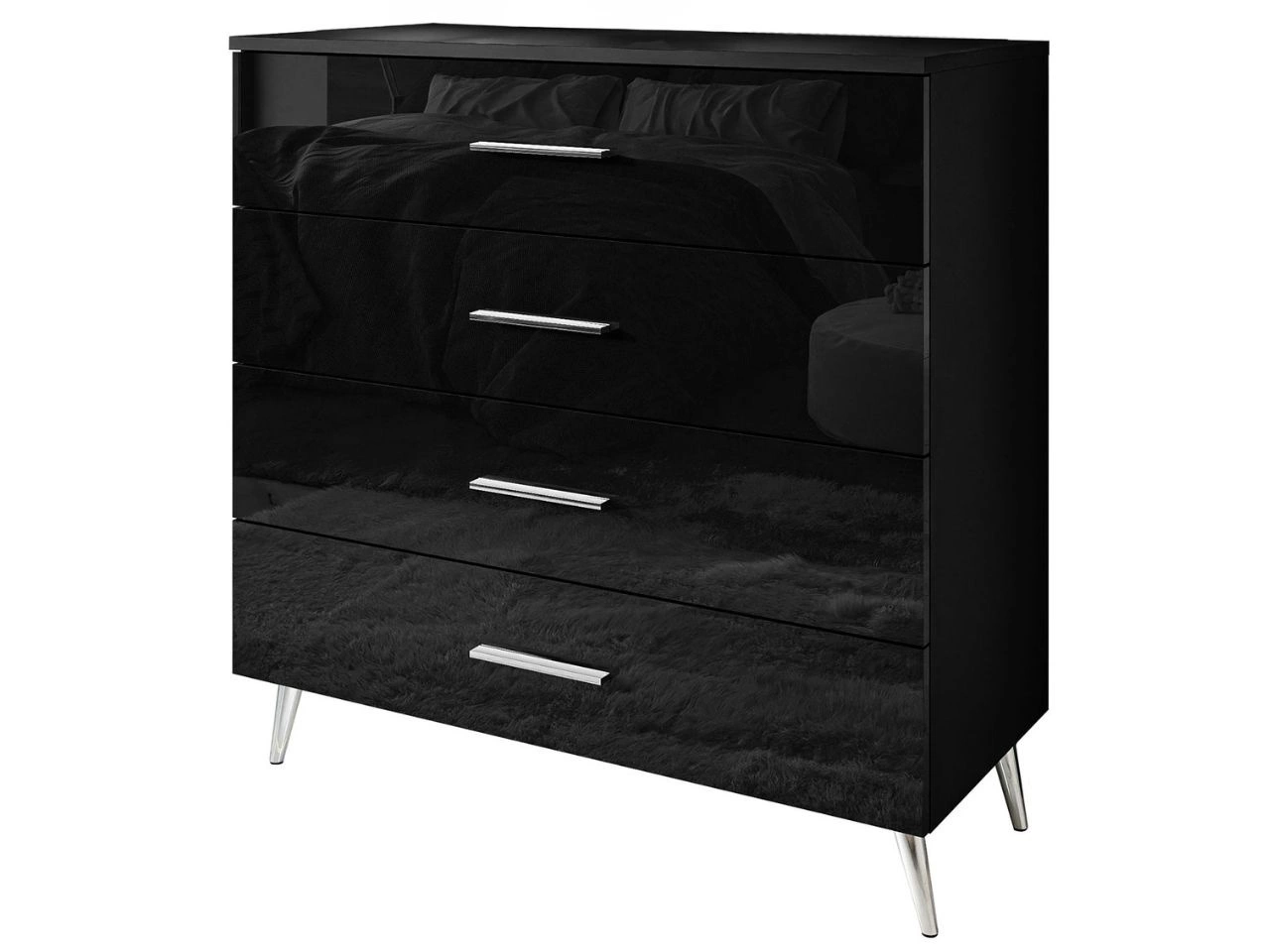 Komoda z czterema szufladami i oświetleniem LED na srebrnych nóżkach Nuveo Czarny połysk