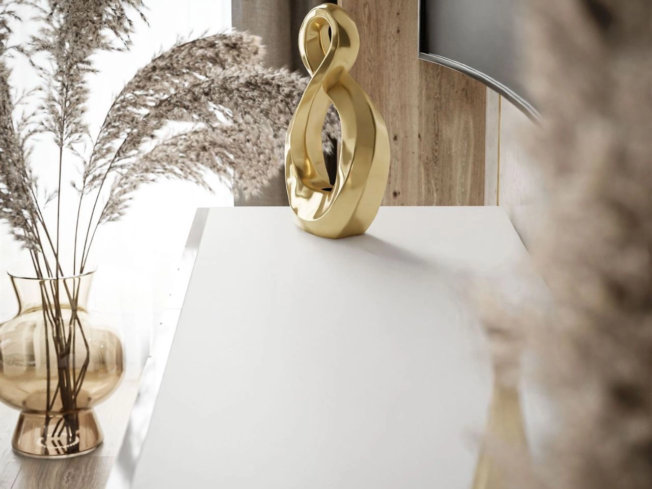 Szafka RTV z frezowanymi frontami w połysku łączy w sobie modny design, trwałość i praktyczne rozwiązania. To funkcjonalny i stylowy element wyposażenia, który nie tylko podkreśli charakter wnętrza, ale też zapewni komfort codziennego użytkowania. Idealna jako mebel RTV do salonu, który stanie się centralnym punktem domowej strefy rozrywki.