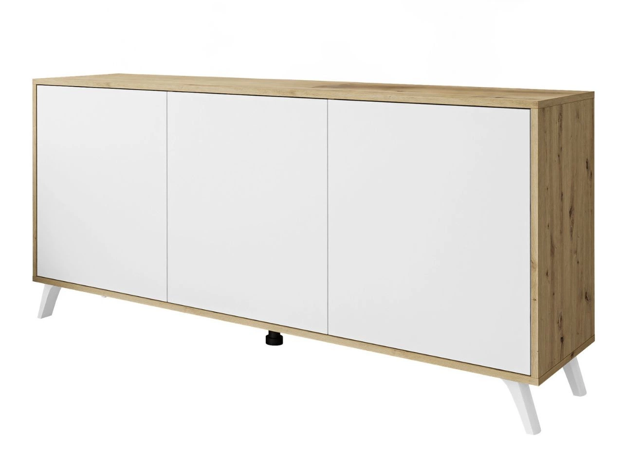Trzydrzwiowa komoda 154 cm w stylu loft na białych nogach Vivance biały mat i dąb artisan