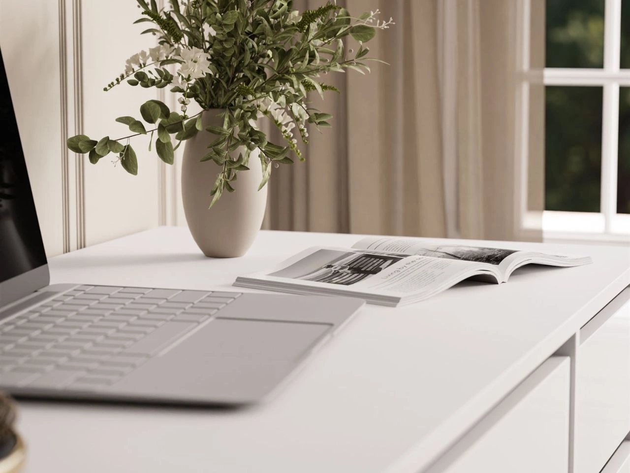 Dobierasz do: Biurko z pięcioma szufladami Melo biały połysk