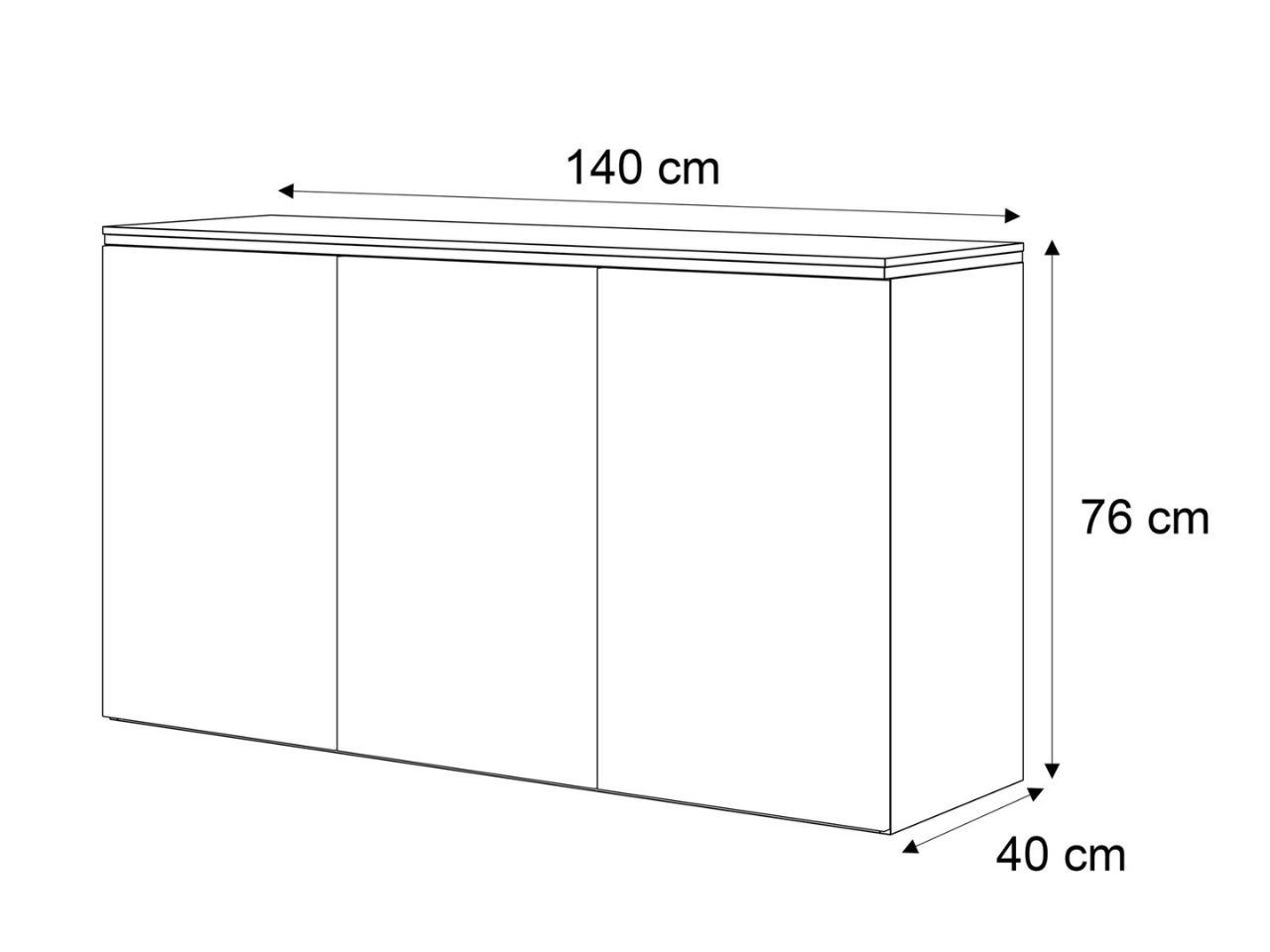 Komoda Evare charakteryzuje się trzema frontami drzwiowymi, które skrywają za sobą dwie wnęki do przechowywania. Każda z nich przedzielona jest dodatkowo praktyczną półką, która jeszcze bardziej zwiększa funkcjonalność mebla. Pod blatem znajdziemy złotą listwę ozdobną - dokładnie taką, jaka zdobi witrynę. Otwieranie drzwiczek jest również realizowane przez system Push To Open.
