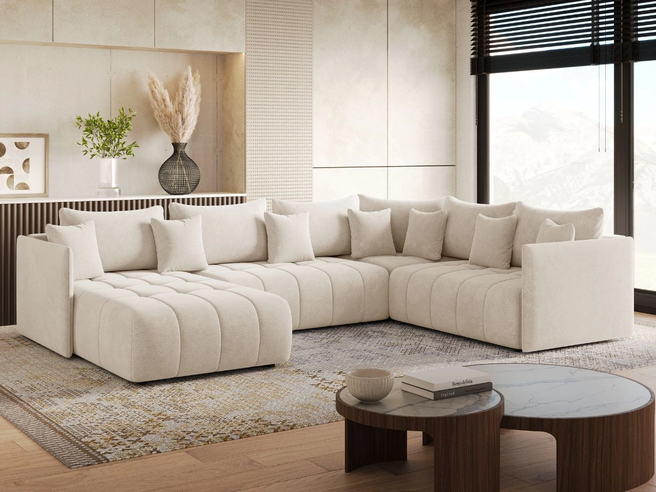 Dobierasz do: Narożnik U uniwersalny z funkcją spania i pojemnikiem Ardi Bis Beżowy