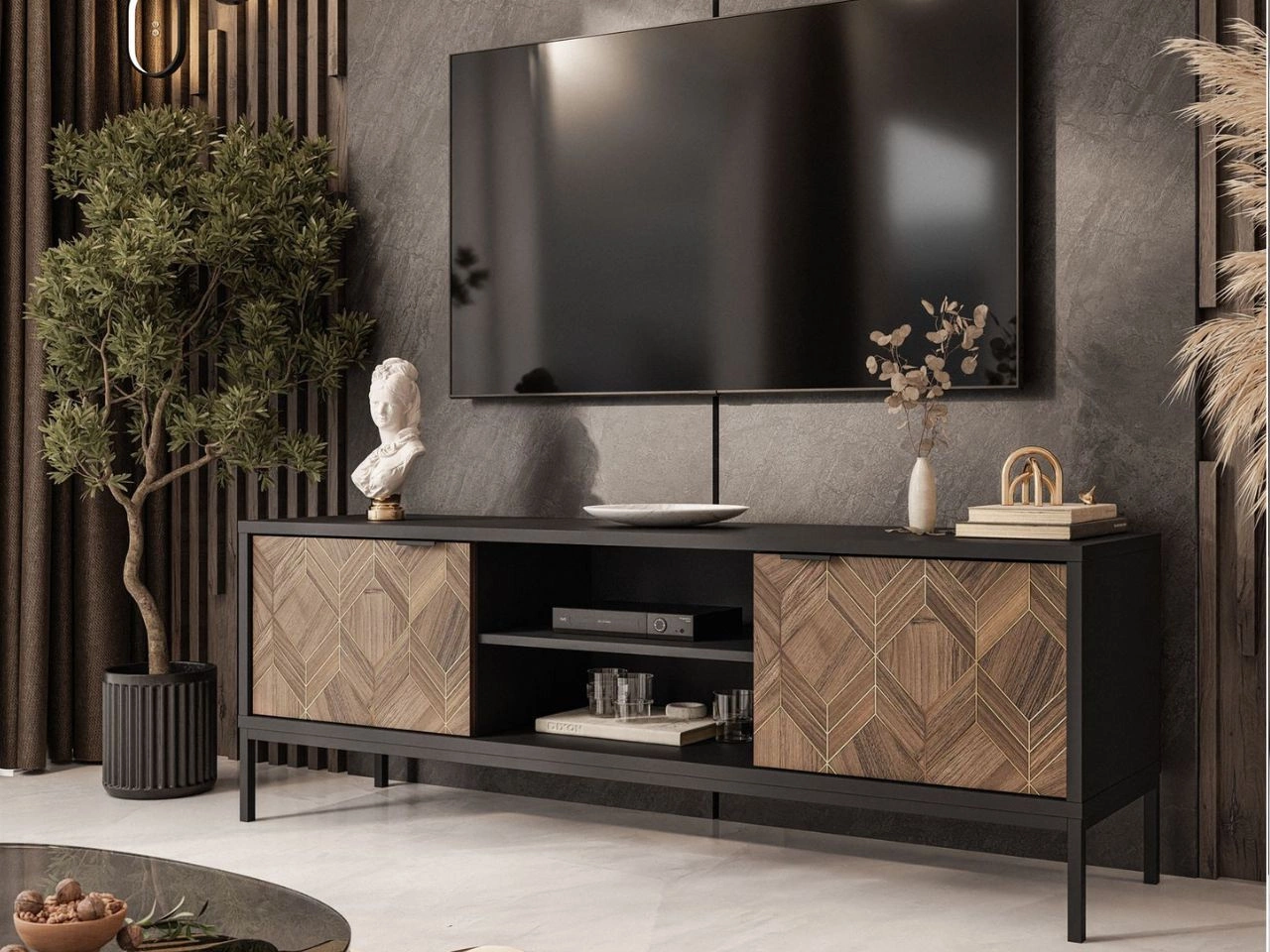 Szafka pod telewizor z drzwiczkami Tavio Czarna
