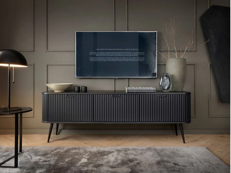 Szafka pod telewizor z drzwiczkami na czarnych nogach Viva Czarna