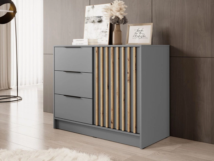 Komoda z drzwiami i szufladami Macron 105 cm Szary z lamelami
