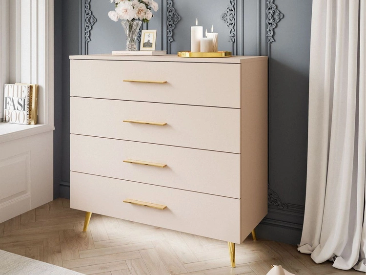 Komoda z szufladami i oświetleniem LED na złotych nogach Nuveo Kaszmir