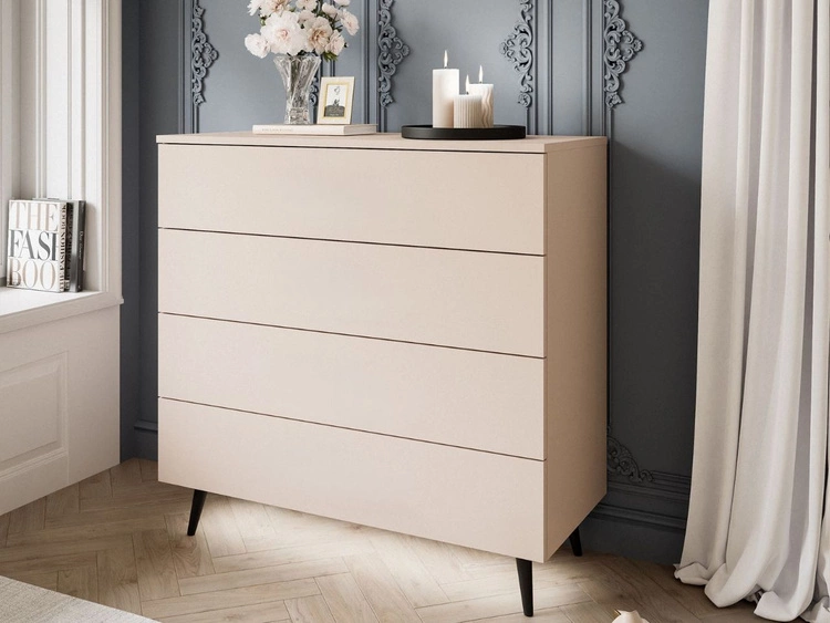 Komoda z szufladami i oświetleniem LED na czarnych nogach Nuveo Kaszmir
