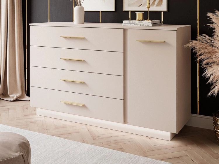 Komoda z drzwiami, szufladami i oświetleniem LED Nuveo Kaszmirowa