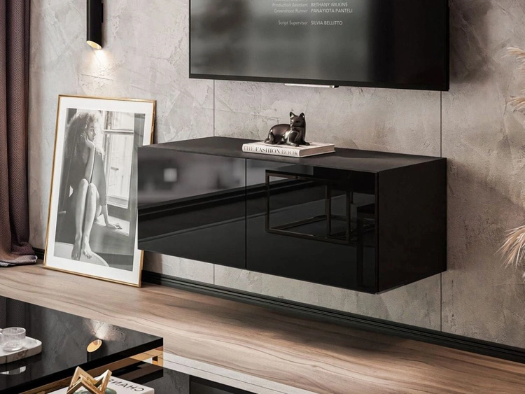 Wisząca szafka RTV pod telewizor z drzwiczkami 100 cm Nodoo Czarny połysk