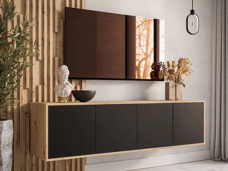 Szafka RTV pod telewizor wisząca z drzwiczkami Vivance Czarny i dąb artisan