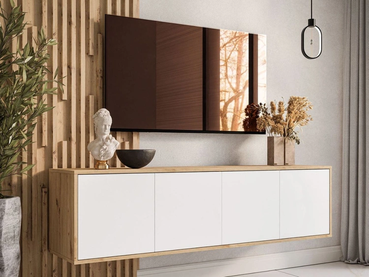 Ilość produktów: 50Szafka RTV pod telewizor wisząca z drzwiczkami Vivance Biały i dąb artisan