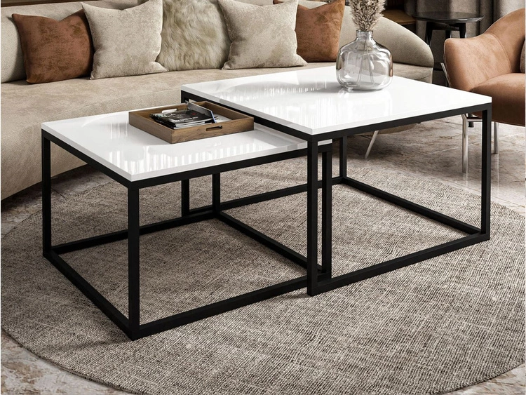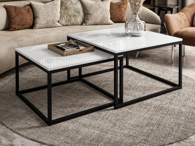 Stolik kawowy na czarnym stelażu Asumi Biały Połysk 40x42
