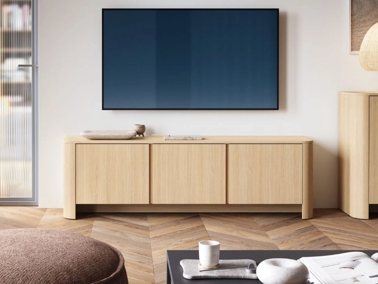 Szafka RTV ze złotą listwą dekoracyjną do salonu Brillo Dąb Vicenza