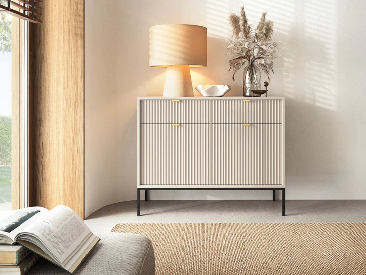 Komoda z drzwiami i szufladami Amber Kaszmir na czarnych nogach