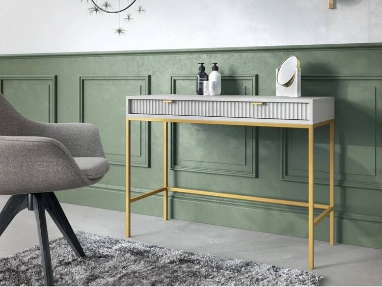 Toaletka z złotymi metalowymi nogami Amber szara
