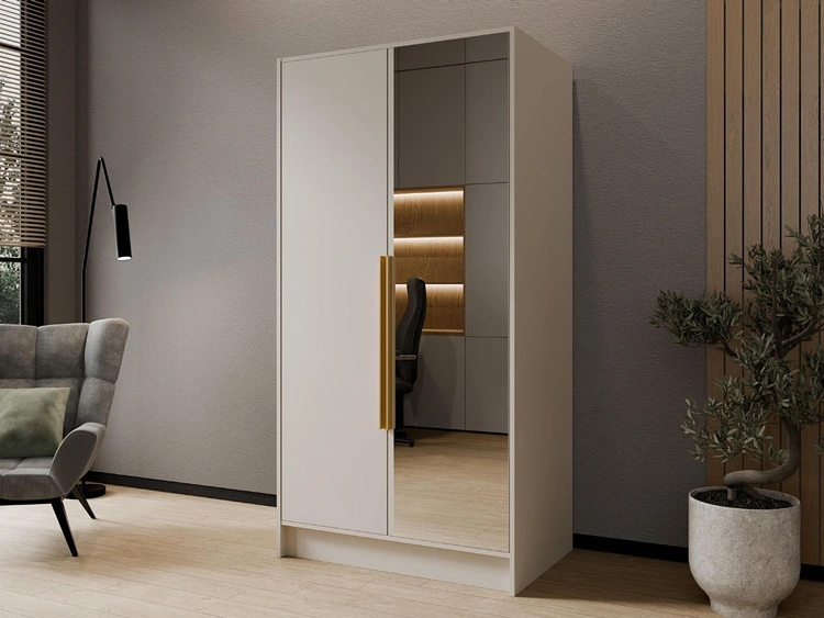 Szafa otwierana z lustrem 100 cm Lucca Kaszmir z złotymi uchwytami
