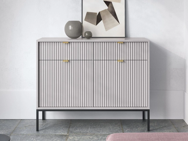 Komoda z drzwiami i szufladami Amber szara na czarnych nogach