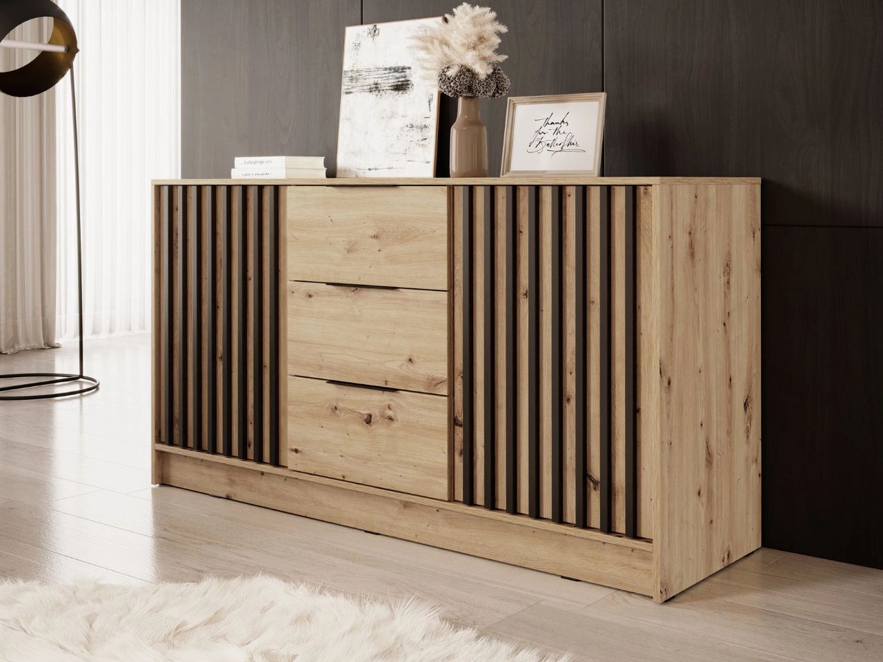 Komoda z drzwiami i szufladami 155 cm Macron Dąb Artisan z lamelami