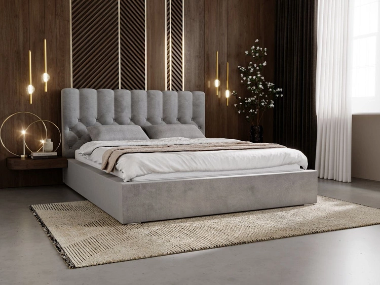 Łóżko tapicerowane z pojemnikiem i stelażem 160x200 Loris Szare