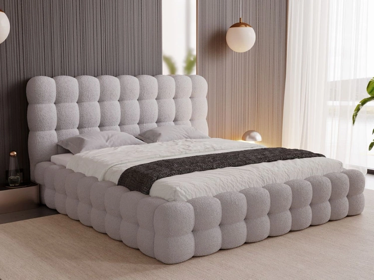 Łóżko tapicerowane z pojemnikiem i stelażem 200x200 Cloud jasnoszare