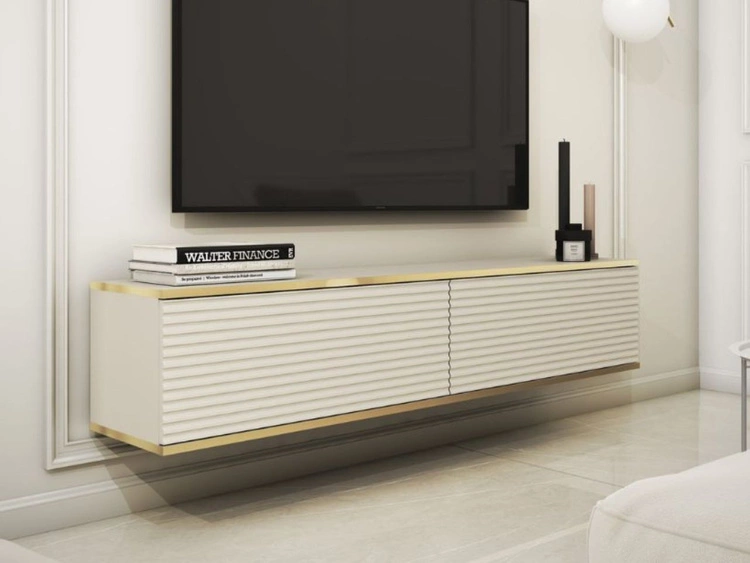 Szafka wisząca pod telewizor drzwiczkami z ryflowanym frontem 175 cm Diolo Beżowa