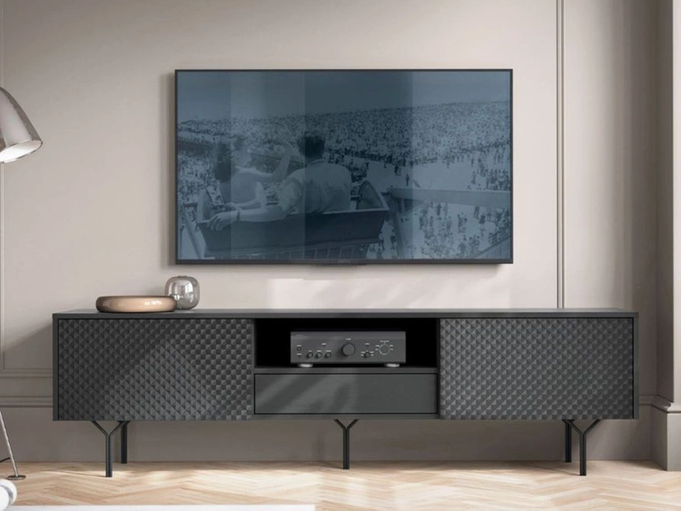 Szafka pod telewizor z szufladą i drzwiczkami Ravi Czarna