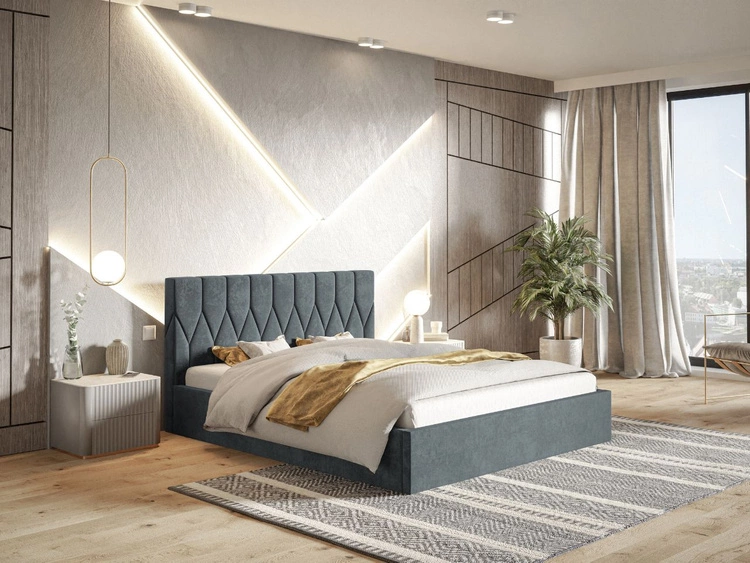 Łóżko kontynentalne z pojemnikiem na pościel 160x200 Kate Szare