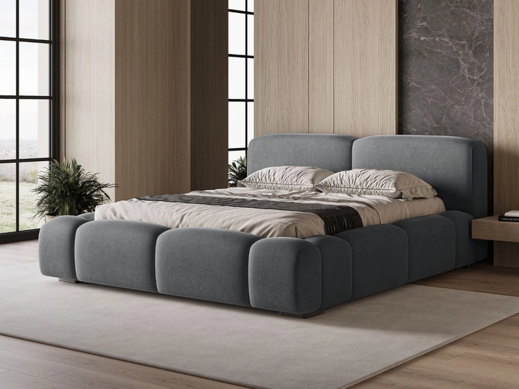 Łóżko tapicerowane z pojemnikiem i stelażem 180x200 Mali Ciemnoszare