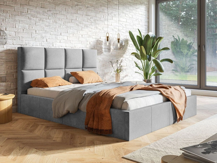 Łóżko tapicerowane z pojemnikiem i stelażem 140x200 Malo jasnoszare