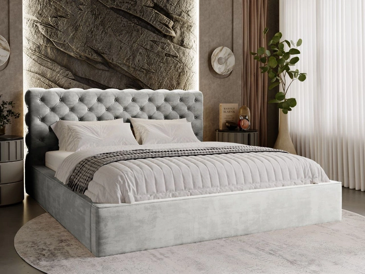 Łóżko tapicerowane z pojemnikiem i stelażem 180x200 Monaco Szare