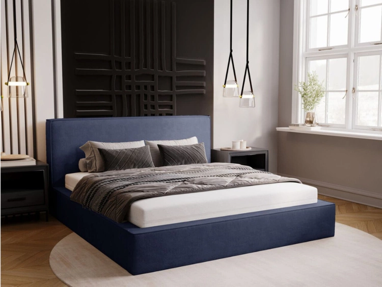 Łóżko tapicerowane z pojemnikiem i stelażem 140x200 Monaco Niebieskie