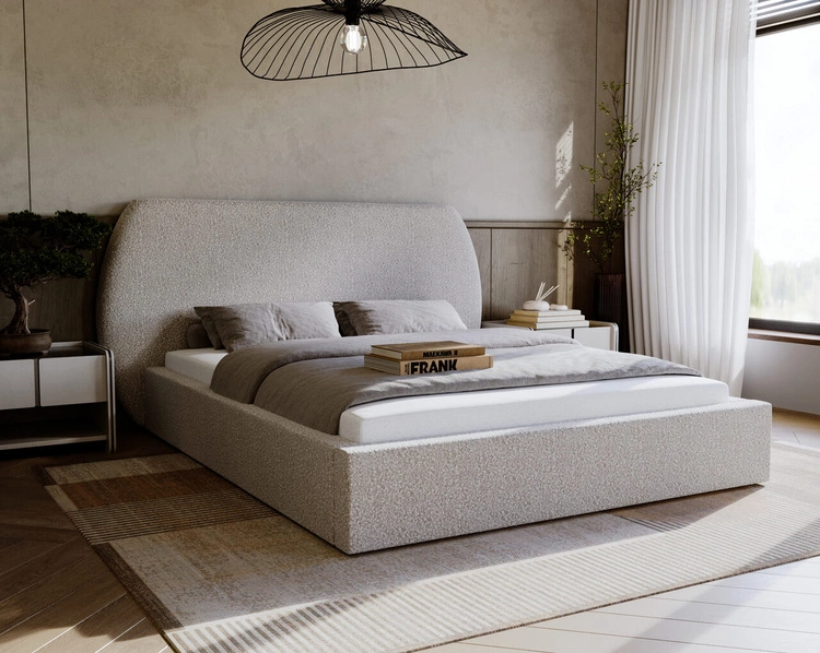 Łóżko tapicerowane z pojemnikiem i stelażem 140x200 cm Blossom Beżowe
