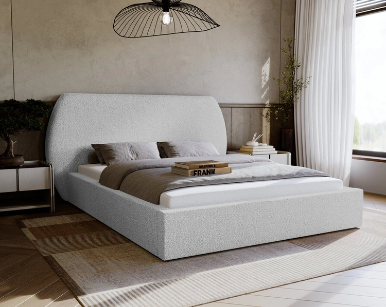 Łóżko tapicerowane z pojemnikiem i stelażem 140x200 cm Blossom Jasnoszare